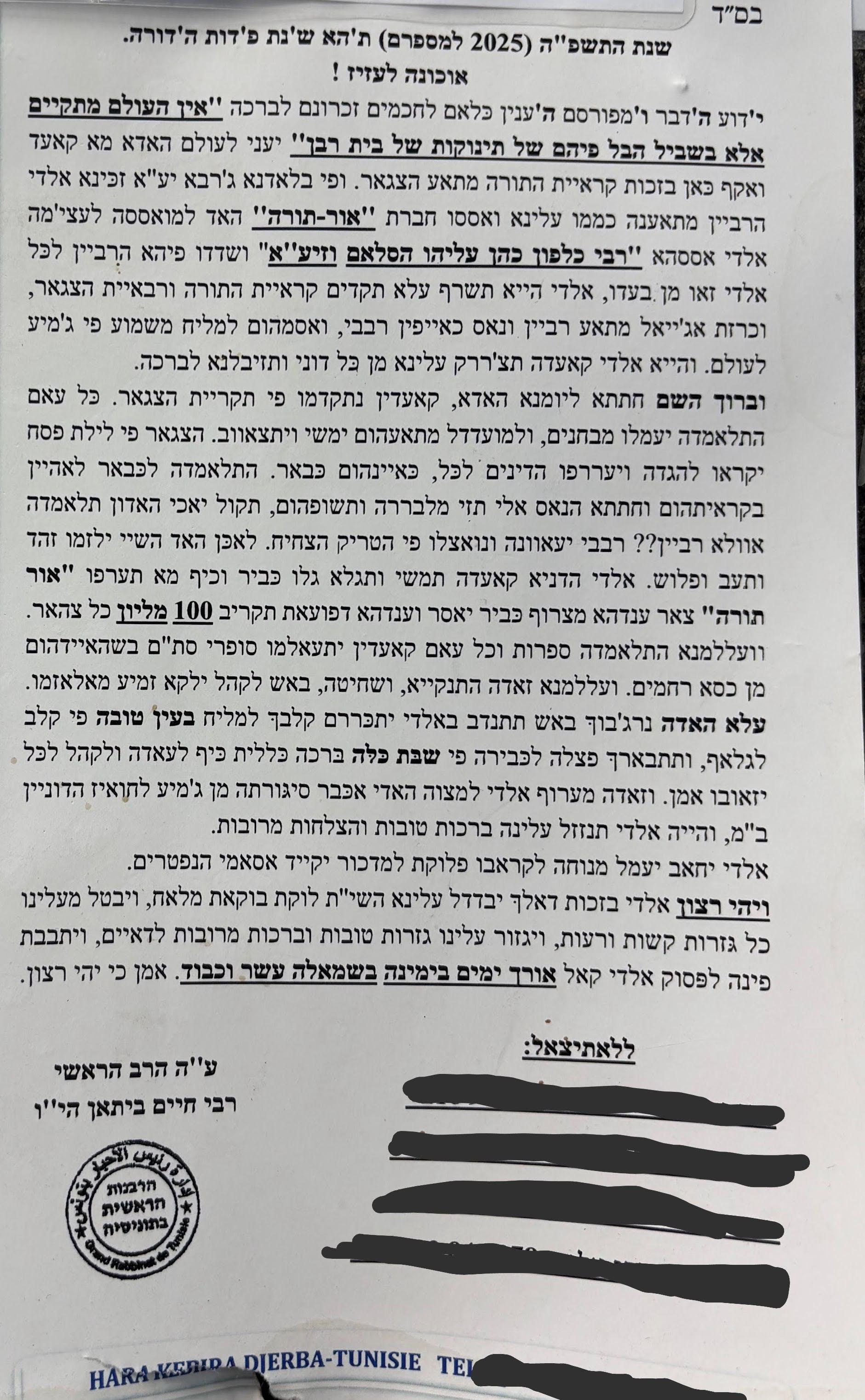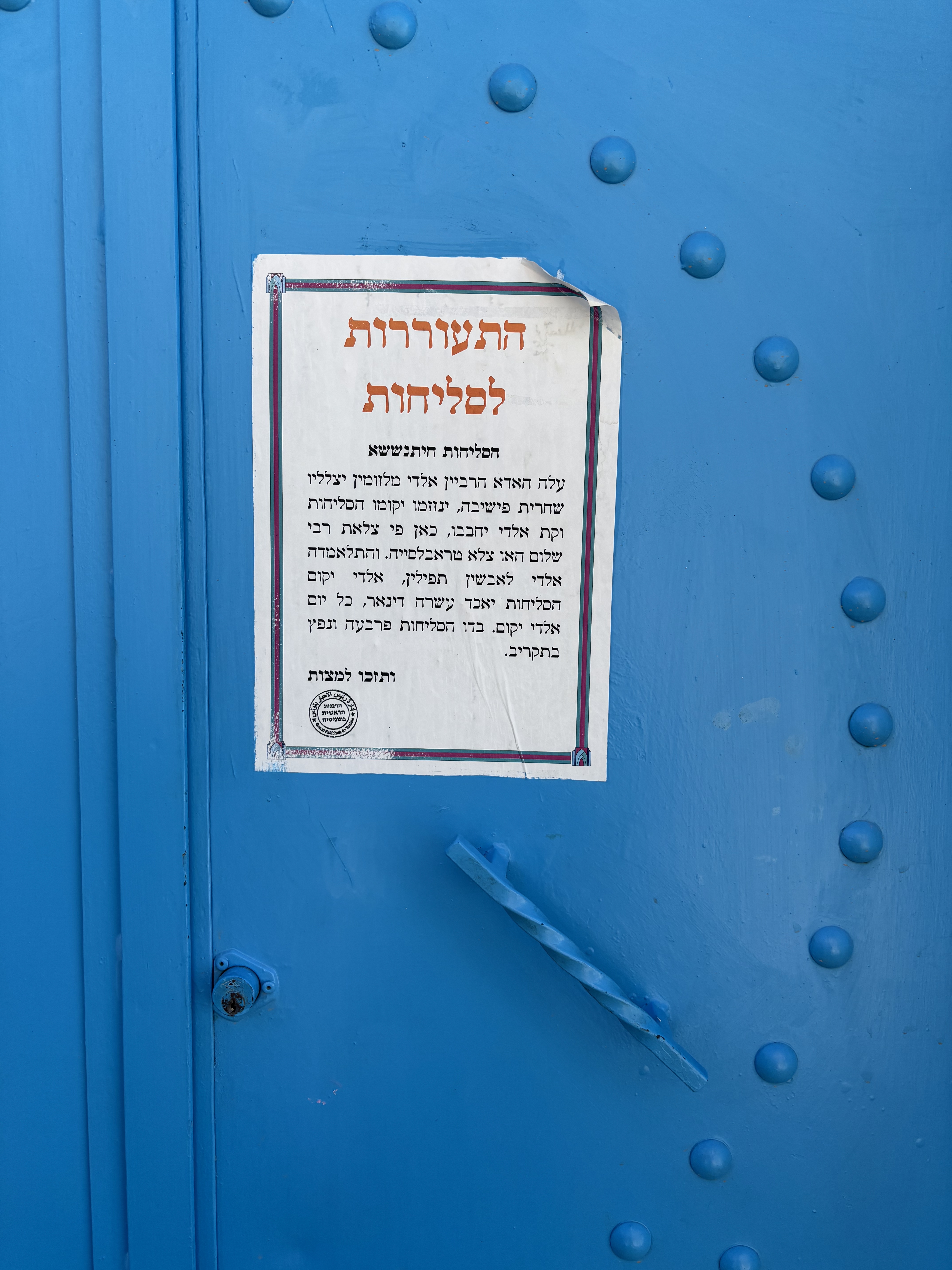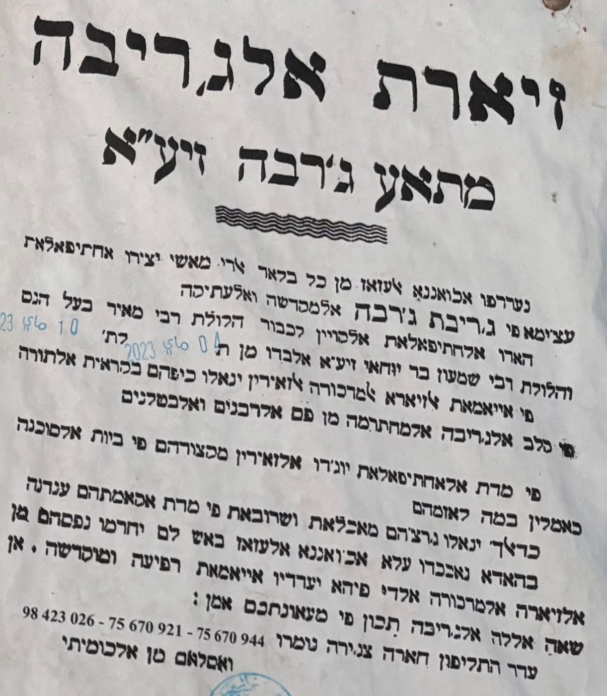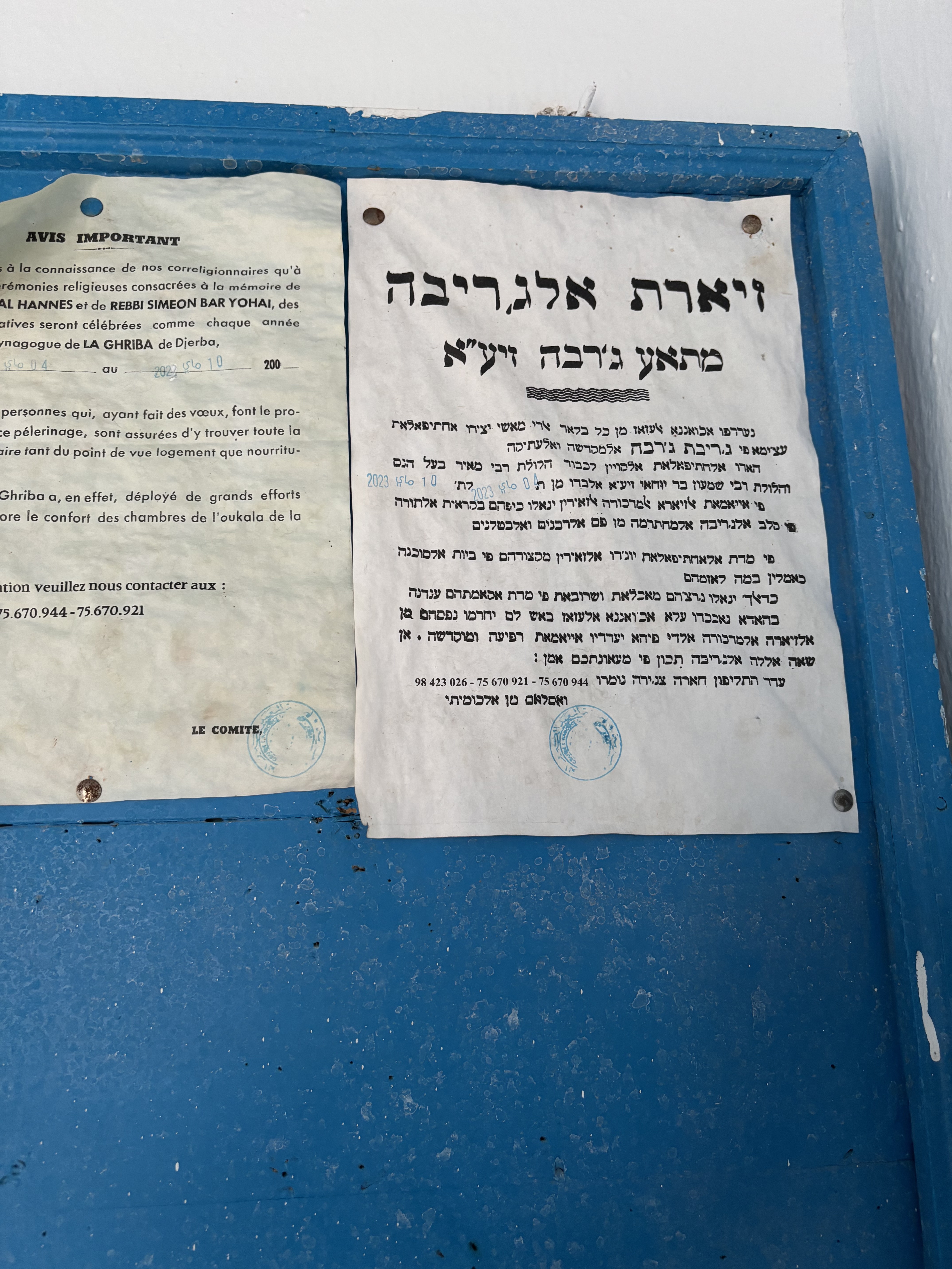 I recently came back from a week-long trip with my wife to Djerba, Tunisia. I’ll write a longer post about the trip in general, but for now I want to focus on one thing that kept catching my eye—and ear: the Judeo-Arabic used around Hara Kabira. Most people talk about Jewish languages outside Modern Hebrew as if they were relics. In Djerba, Judeo-Arabic is not a museum piece. It’s printed on signs, written on walls, and spoken by the people who live there.
